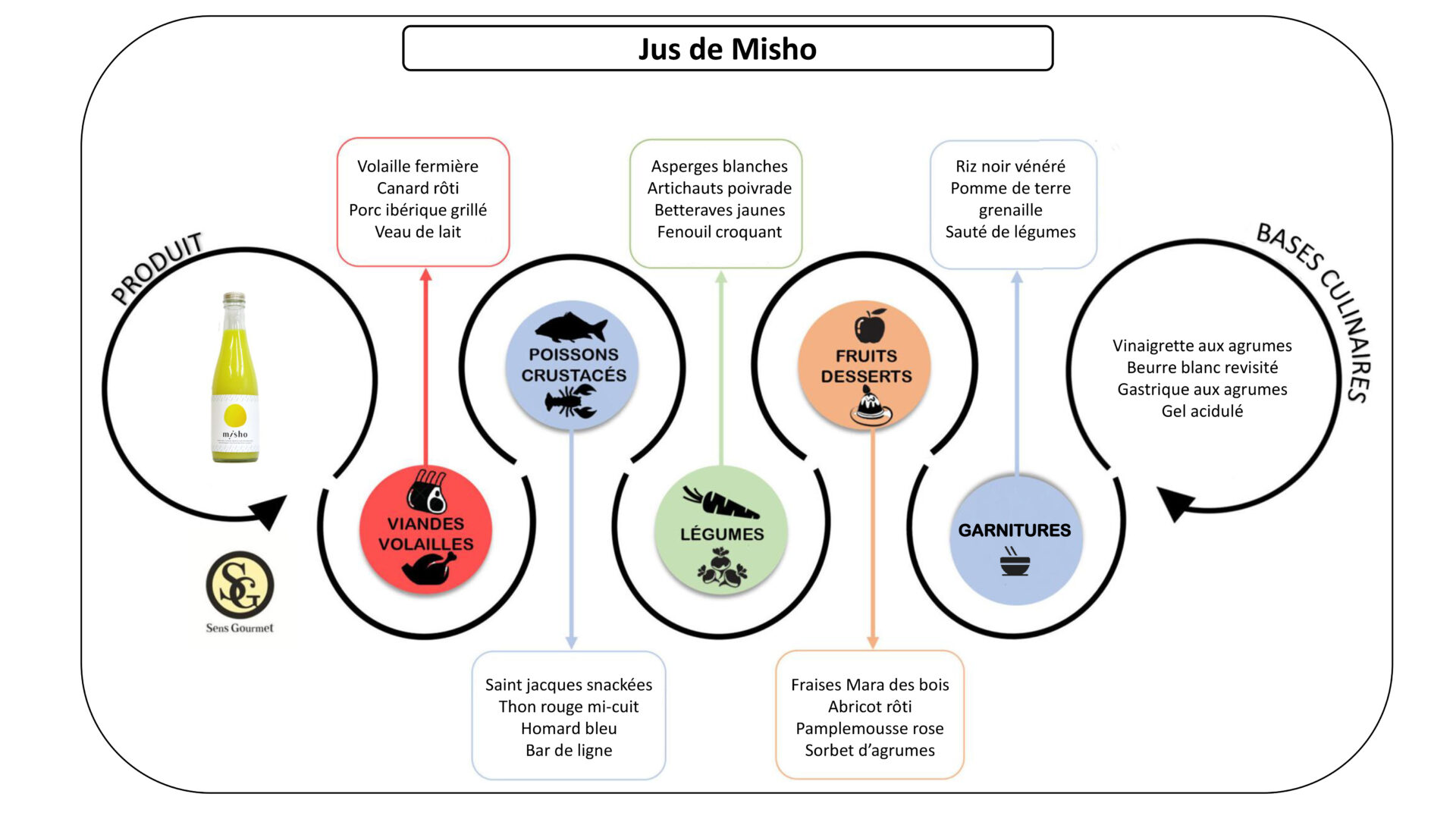 Originaire de la préfecture d’Ehime, le Misho est un agrume atypique qui mûrit au printemps et jusqu’en été, une saison unique pour un agrume. Exclusivement importé par Sens Gourmet, il surprend par son goût unique : toutes les saveurs éclatantes des agrumes, mais sans acidité, seulement une douceur délicatement fruitée avec une pointe subtile d’amertume.